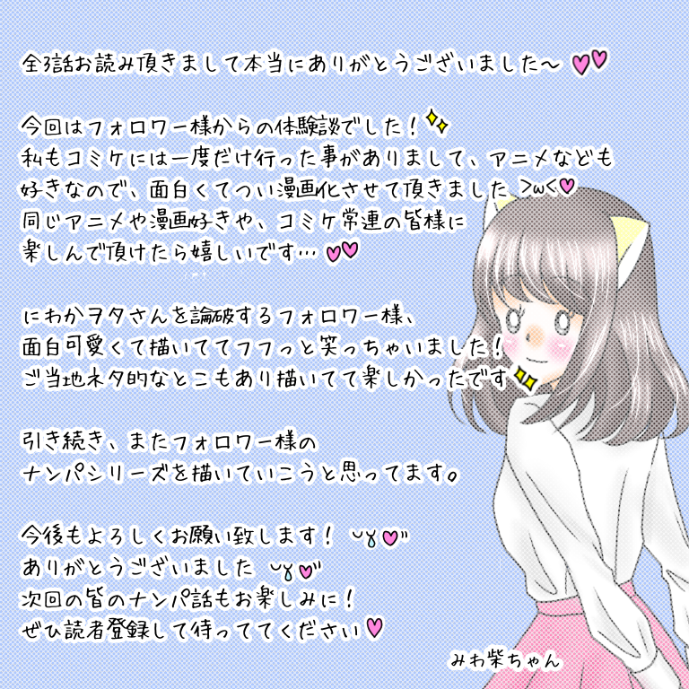 今回はヲタクなフォロワー様の少し変わったナンパ体験のお話を漫画化しました。