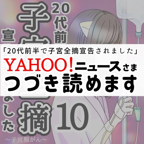 カテゴリ : 体験談マンガ日常漫画 YAHOO!ニュースになりました【インタビュー】 ご訪問ありがとうございます♡この度、漫画「20代前半で子宮全摘宣告されました」をYAHOO!ニュースさんが紹介してくださいましたー☺️✨このような機会に恵まれたのは、日頃、応援してくださる読者様のおかげです💕本当にありがとうございます。私は同じ思いを誰にもしてほ ... 続きを読む