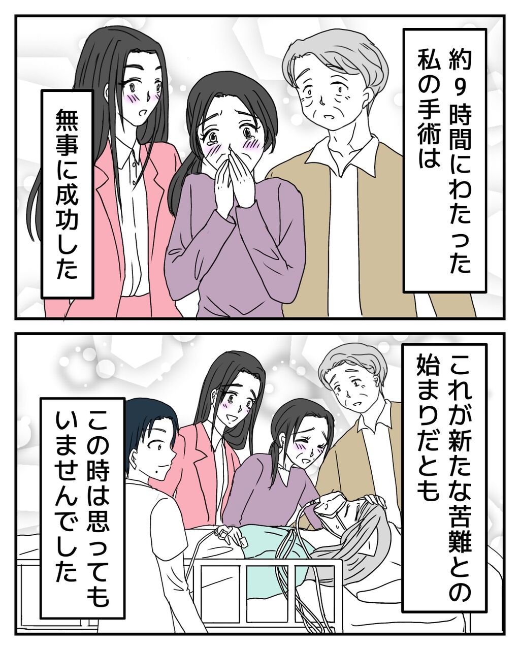 ご存知の方もいると思いますが、コミックエッセイを始めた頃、私はまだ入院しておりました。今まで何の病気か公にはしていなかったのですが、漫画化することを決めました☺️若くても検診に通っていても、誰でも子宮を失う可能性があるという事実を伝えたいです。そして、子宮を残そうか悩んでいる方に届いたらいいなと思います。