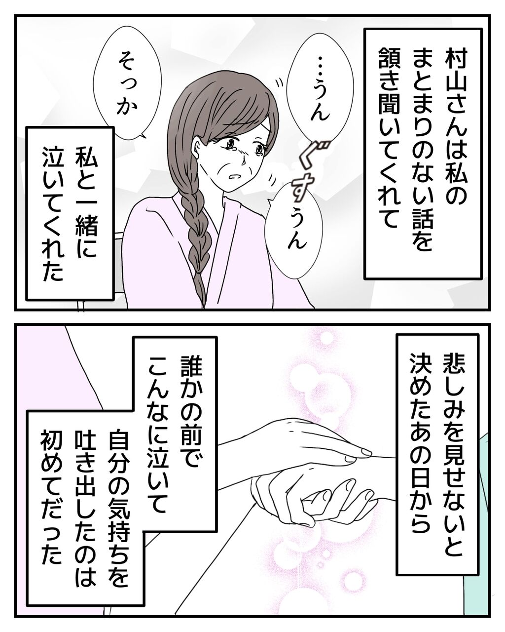 村山さんの言葉にどんどん本音が溢れてしまいました。家族にも言えずに我慢していた気持ちを、ほぼ初対面なのにも関わず、話してしまったのです。今思うと自分でも不思議ですが、限界だったのかもしれません。この病院へ転院したことにより、同じ病気を抱える人達と出会って、私は本当に救われました。