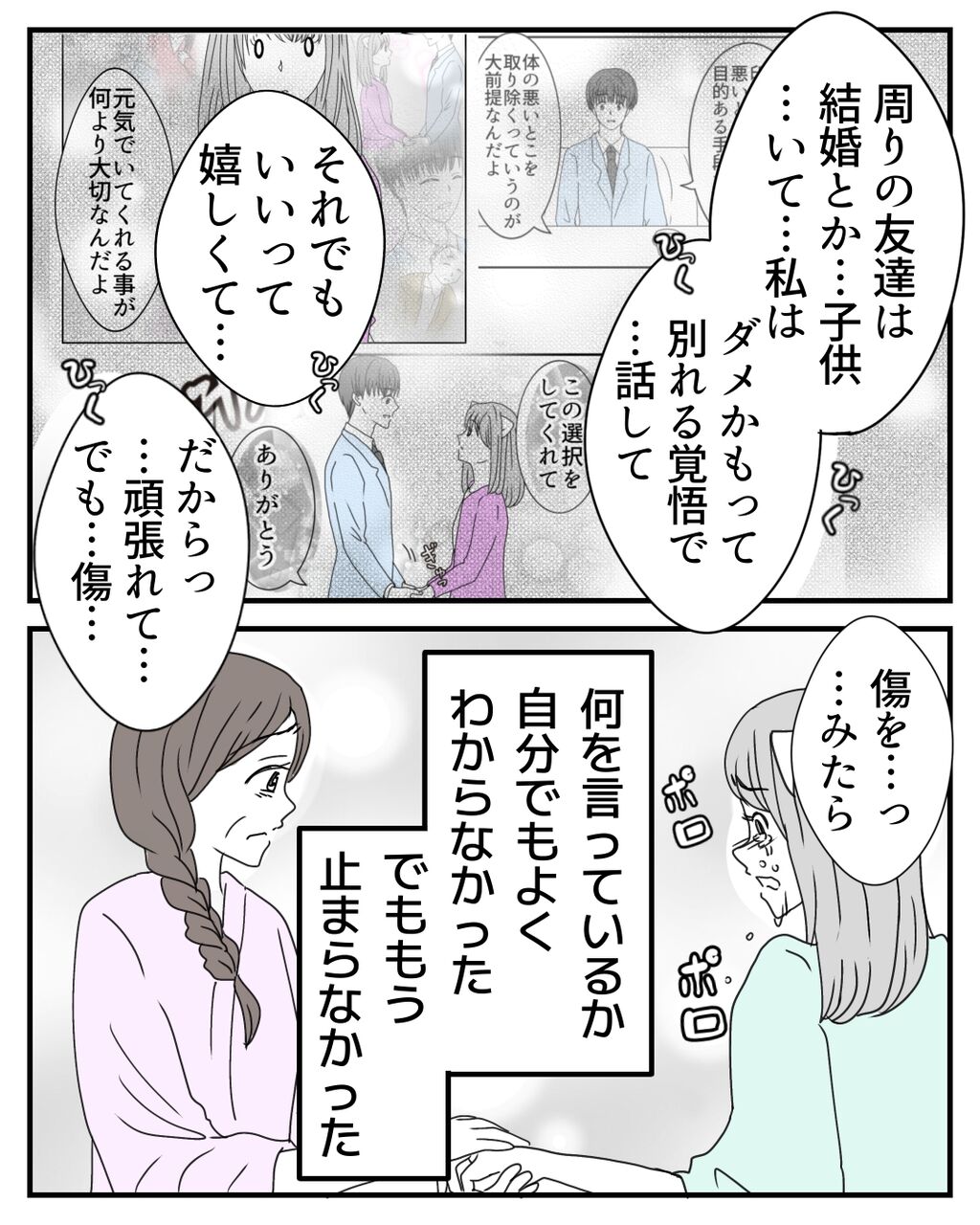 ご存知の方もいると思いますが、コミックエッセイを始めた頃、私はまだ入院しておりました。今まで何の病気か公にはしていなかったのですが、漫画化することを決めました☺️若くても検診に通っていても、誰でも子宮を失う可能性があるという事実を伝えたいです。そして、子宮を残そうか悩んでいる方に届いたらいいなと思います。