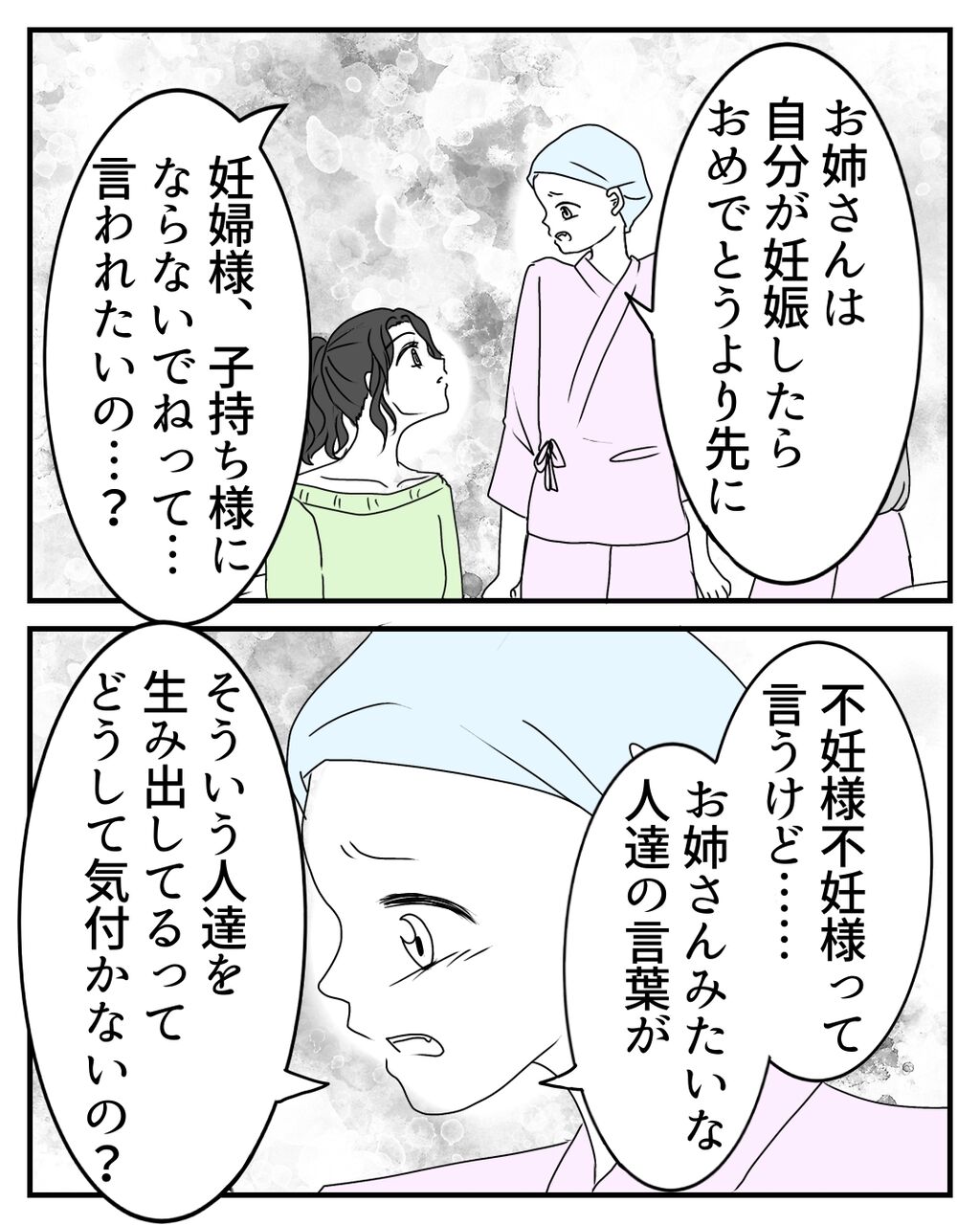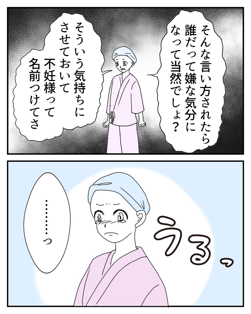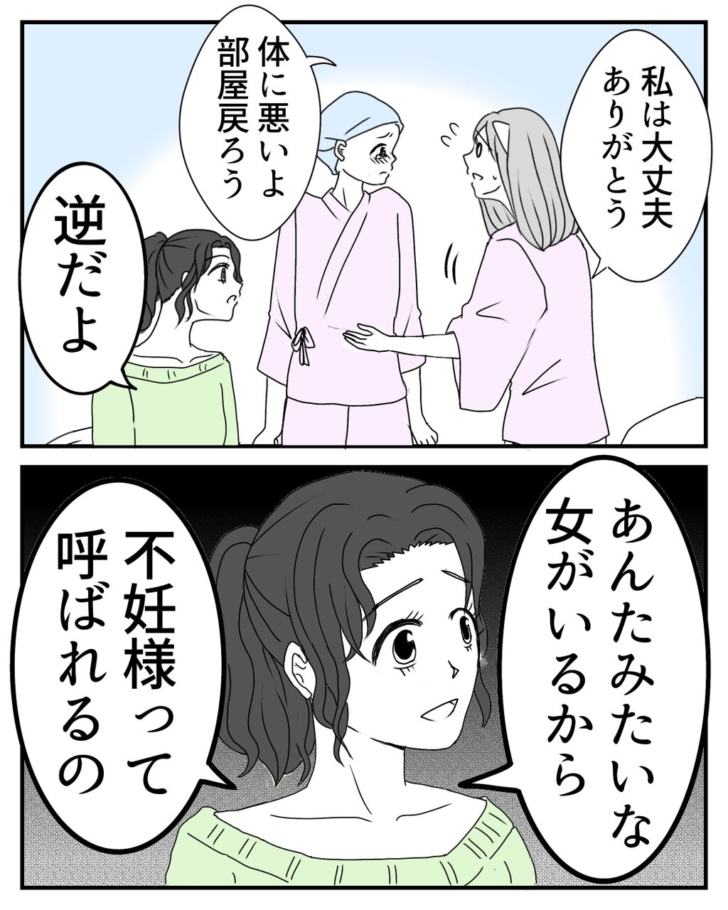 私は不妊様という言葉をこの時初めて知りましたが、ももかちゃんは前から知っているようでした。私ががんになるよりも前から、病気と長く闘っていたももかちゃんにとって、許せない言葉だったのだと思います。私には恋人や子供について、ほしいと思った事がないから気にしていないと以前お話して(78話)いましたが、あれは嘘で、そんな自分を隠していたのでした…。そんなももかちゃんの気持ちも届かず、心無いみどりちゃんの発言に私は…。