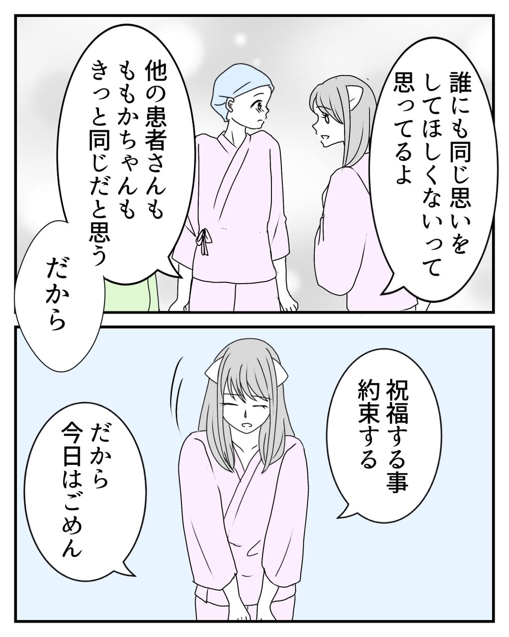 せっかく来てくれたみどりりゃんに失礼なのは承知の上で、素直に自分の気持ちや早川さん、他の患者さんの気持ちを伝えました。