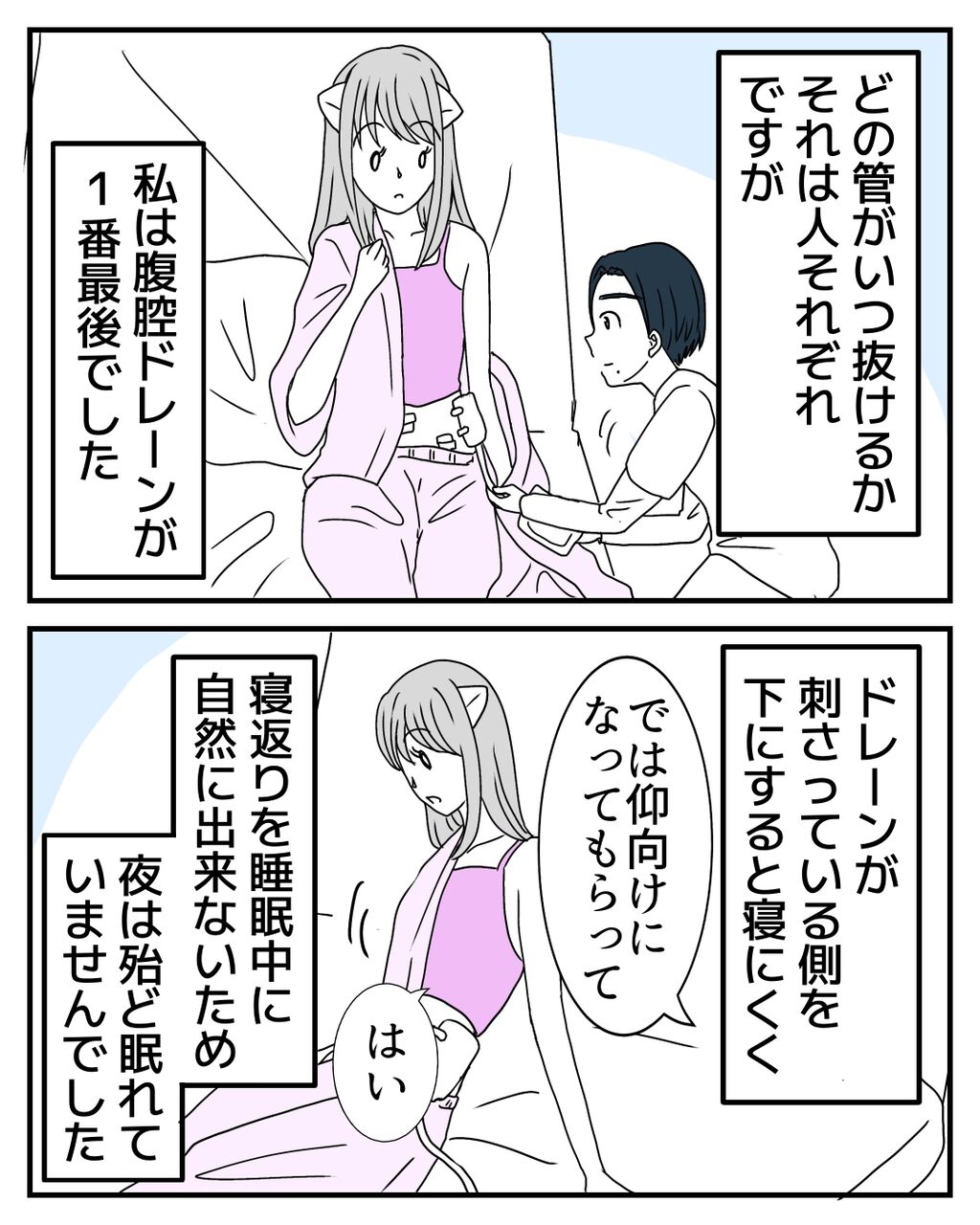 腹腔ドレーンを抜く時は不安だと思いますが、安心して大丈夫です👍笑