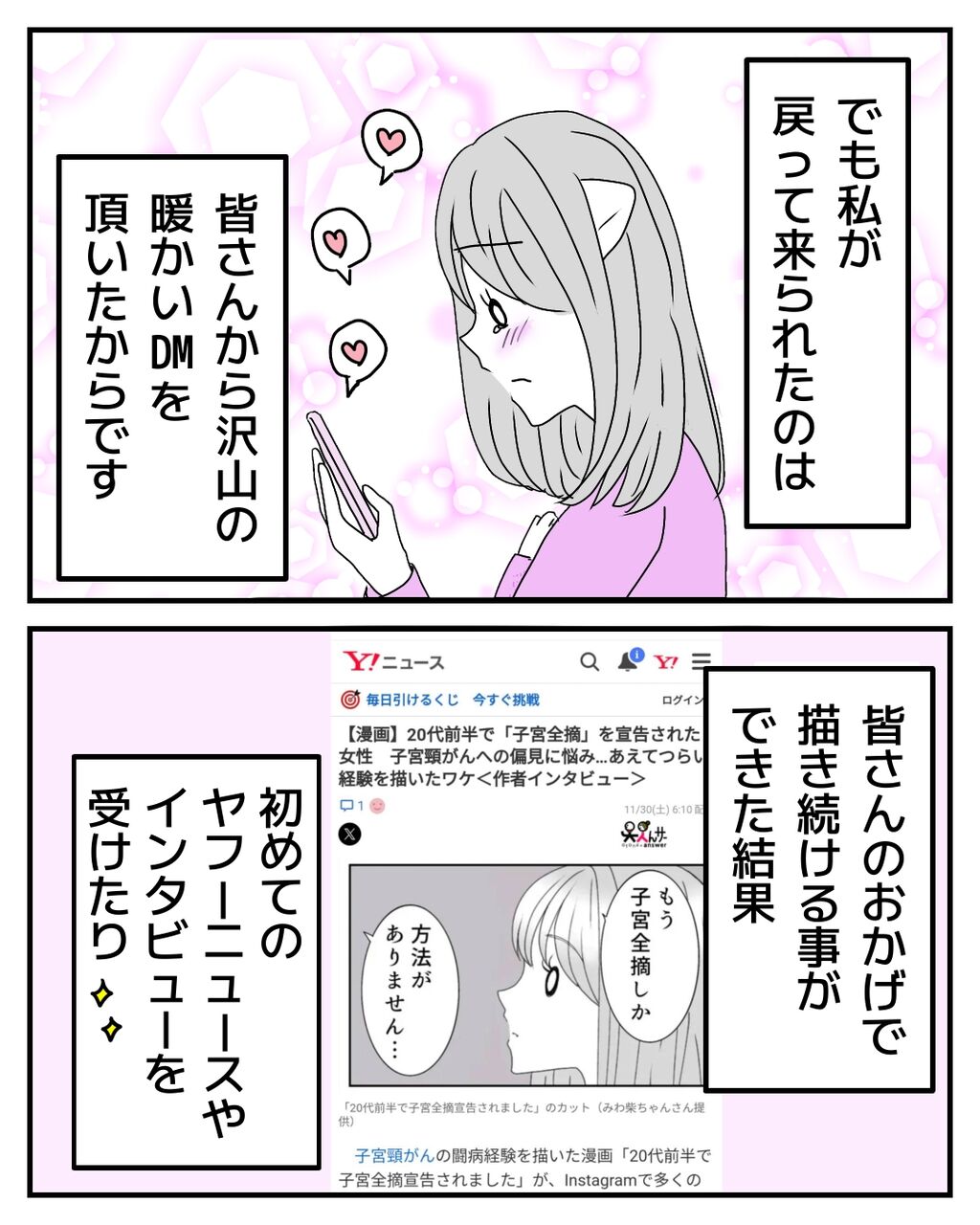「20代前半で子宮全摘宣告されました」100話を記念して描いたマンガです⬇︎