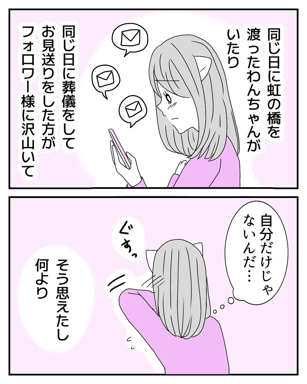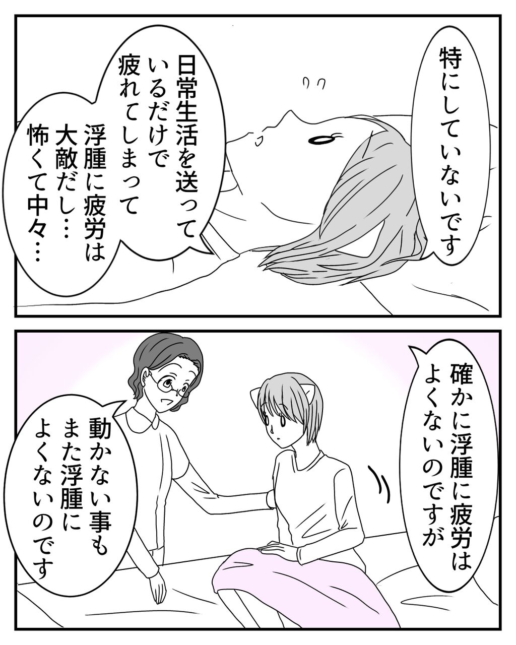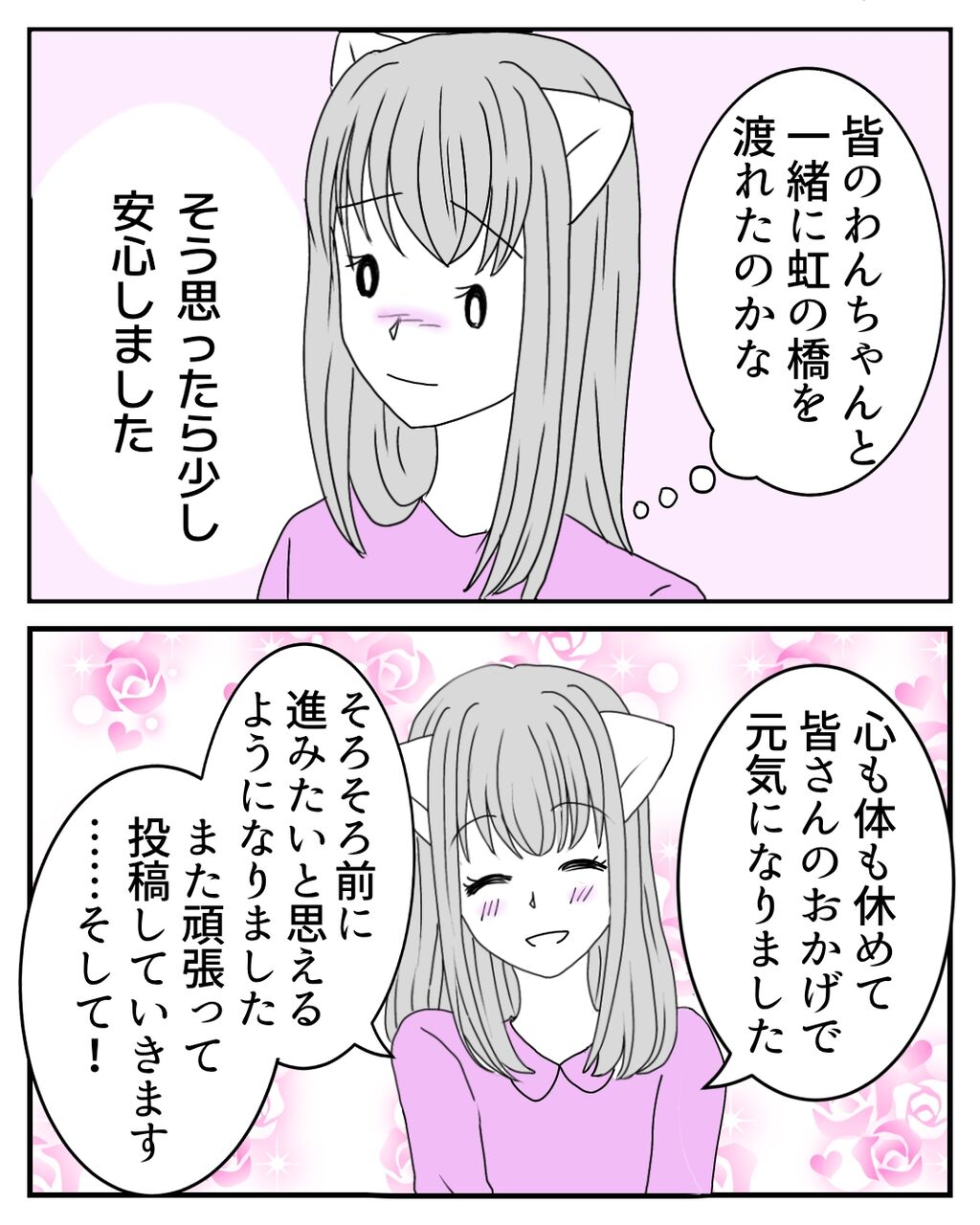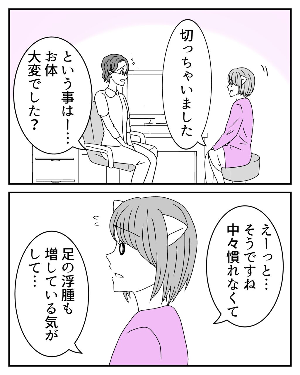 活動再開のお知らせ 2025年02月21日 数コマでしたがいかかでしたか?皆さんが少しでも穏やかな気持ちになれたら嬉しいです☺️🌸1ヶ月以上、連載の更新も止まっているため、お話をお忘れの方もいらっしゃるのではないでしょうか😶🌫️ここで前回のお話を再掲載させて頂きます。手術で子宮を残せたけど、後遺症に日々奮闘する私❤️🔥退院してから初めての婦人科診察を終え、リンパケア科に来ました。髪を切ったことを先生に気づかれて…。次回更新をお楽しみに!⬇︎はじめから読む⬇︎ ⬇︎前回の話はこちら⬇︎更新を見逃さない!更新通知をアプリで受け取れます!ご登録はこちら!⬇︎ ⬇︎♡Instagramはこちら♡⬇︎ 「日常漫画」カテゴリの最新記事 タグ :#犬#ペット#虹の橋#愛犬 < 前の記事次の記事 >